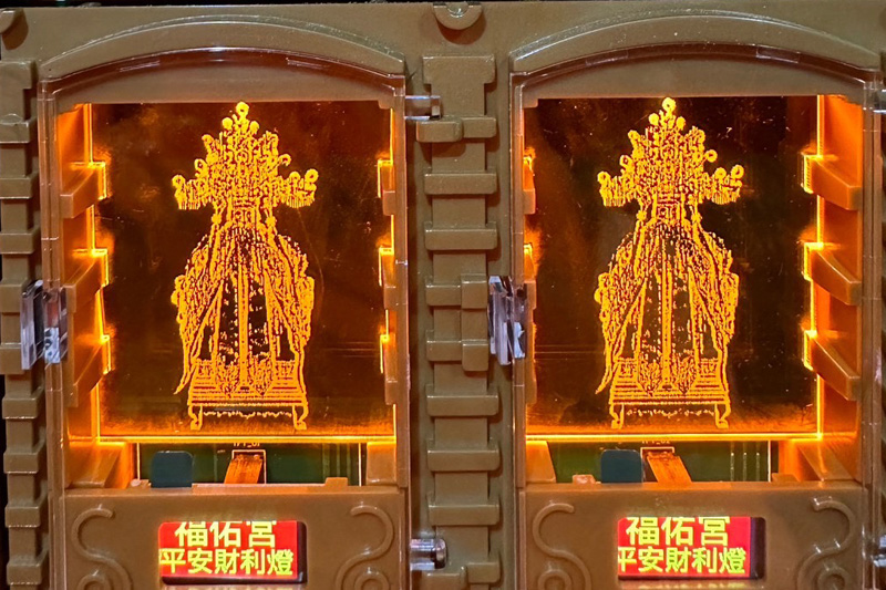為了提供信徒更便利快速的服務,全體委員、阿伯(土地公)決議將光明燈升級成高科技彩色名牌系統,搭配導光板雷雕神像,更貼近主神彰顯土地公莊嚴的氣勢,點亮您新的一年。